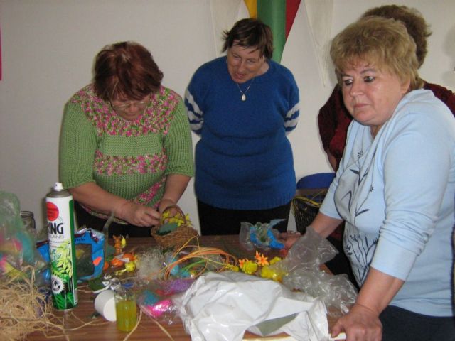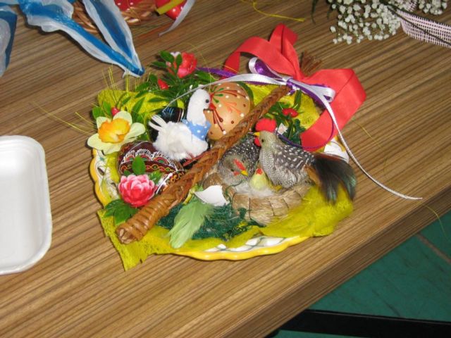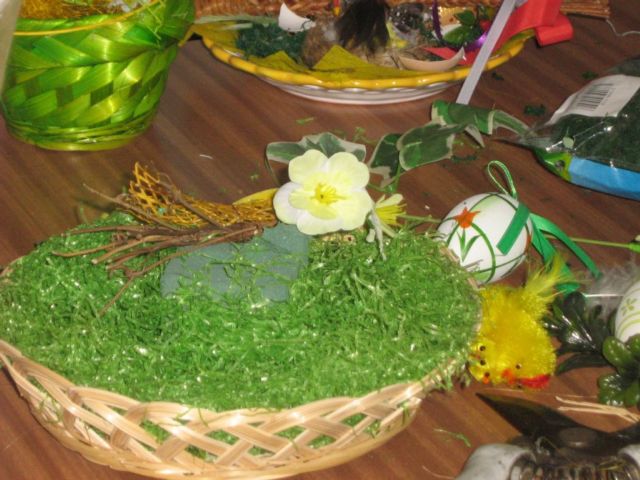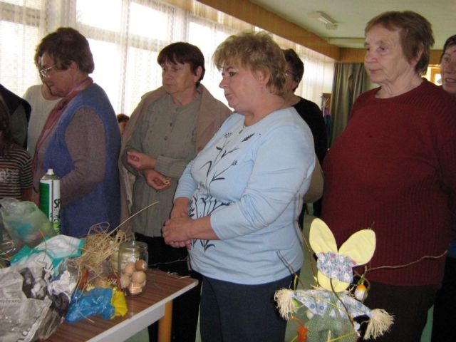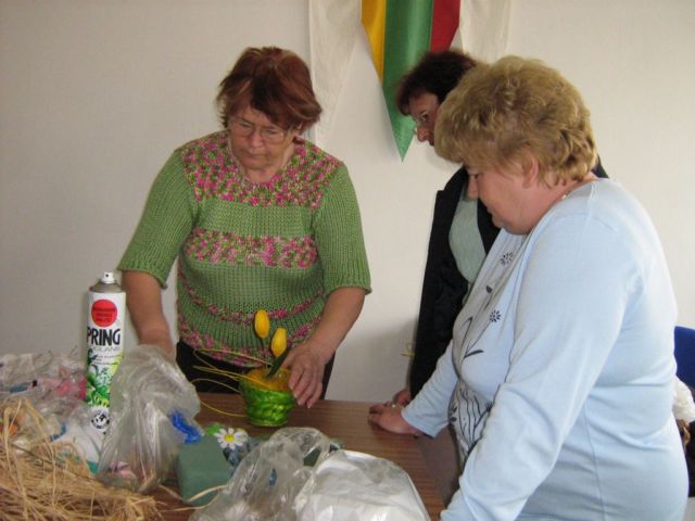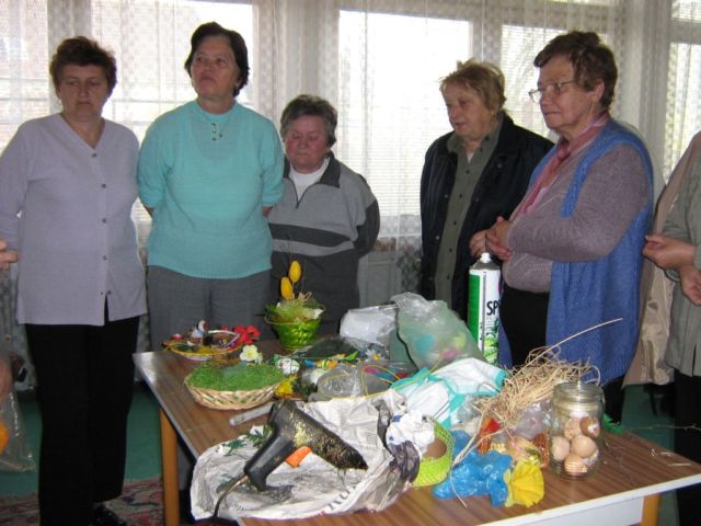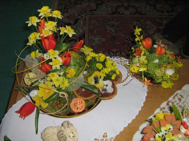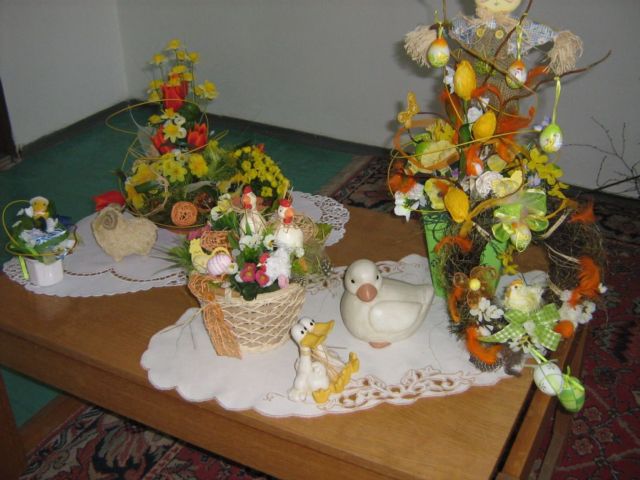 Pracovnú časť schôdze viedla pani Kolárová, kde ukázala postupy a spôsoby aranžovania v duchu blížiacich sa veľkonočných sviatkov.