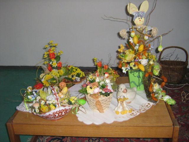 Pracovnú časť schôdze viedla pani Kolárová, kde ukázala postupy a spôsoby aranžovania v duchu blížiacich sa veľkonočných sviatkov.