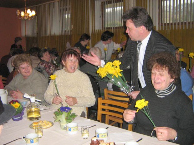 Na stretnutie prišli aj ženy z miestnych častí našej obce, čo v privítaní všetkých zúčastnených s uznaním kvitoval Štefan Horák. Privítal hostí, Bc. Jaroslava Ferianca, poslanca TSK, predsedu OV ĽS-HZDS a starostu obce Rudník, Pavla Klasovitého, podpredsedu OV JDS, Ing. Vladislava Šustra, starostu našej obce. Po jeho príhovore k ženám, pridal vinš starosta obce a nakoniec aj pán Ferianec. Spoločne odovzdali ženám kvety a kytičky. Po prípitku na zdravie, bol na posilnenie pred družnou zábavou s kultúrnym programom, podaný chutný obed. Po ňom sa ujala činnosti osvedčená spevácka skupina, za sprievodu harmoniky pána Klasovitého. Program vypĺňala aj próza v prednese Ľudmily Urbančíkovej a poézia Karla Nedbálka. O prípravách na vydanie novej knihy o našej obci prehovorila Mgr. Zuzana Valášková, vyzvala prítomných, aby historickými dokumentami pomohli pri jej zostavovaní. Potom postupne k hlavnej speváckej skupine pridávali sa aj ďalšie speváčky, tak že bolo ozaj veselo. Pred záverom stretnutia pán Ferianec poďakoval za príjemnú spoločnosť, pohostenie, pripomenul význam a účasť občanov v blížiacich sa voľbách prezidenta. Veľká časť zúčastnených, „skalných“ pokračovala v zábave až do večera.