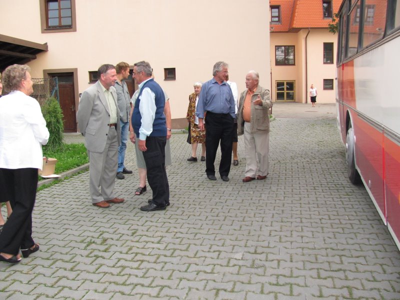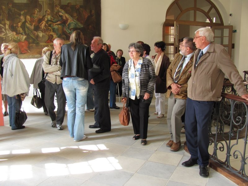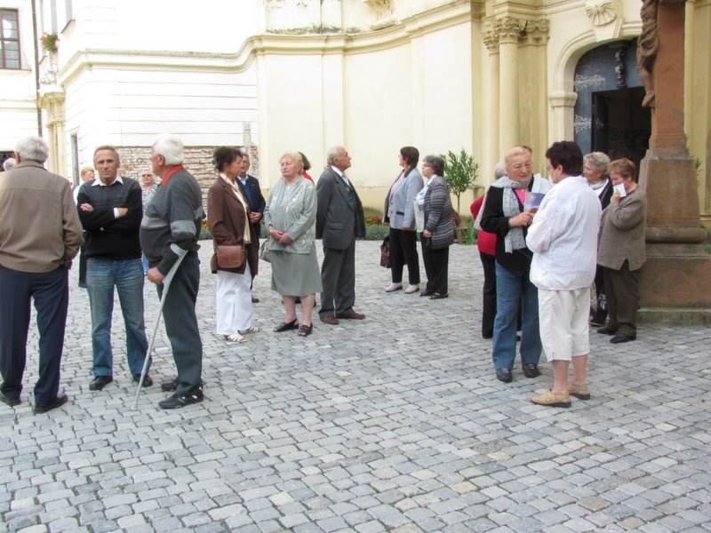 Počasie ráno pri našom odchode nebolo príjemné, takže 27 členov našej JDS a 14 členov družobnej JDS Hrachovište išlo s nádejou, že podľa meteorologickej predpovede budeme mať na Morave lepšie počasie. Privítal nás starosta MČ Brno–Chrlice, Ing.Vladimír Kučera, predsedníčka klubu Ludmila Kořínková a postupne aj ďalší členovia, naši hostitelia. Stretnutie, posedenie sa konalo v spoločenskej miestnosti „Ústavu sociální péče pro zrakově postižené v MČ Brne–Chrlicích (USP)“, blízko radnice. Srdečne sme sa zvítali s mnohými starými známymi, prijali pohostenie a informáciu o pripravenom dopoludňajšom programe. Potom nasledovala cesta do benediktinského kláštora v Rajhrade, na prehliadku Pamätníka písomníctva na Morave. Chvíľu čakania na sprievodkyňu sme využili na prehliadku kostola, opátskeho chrámu sv. Petra a Pavla.