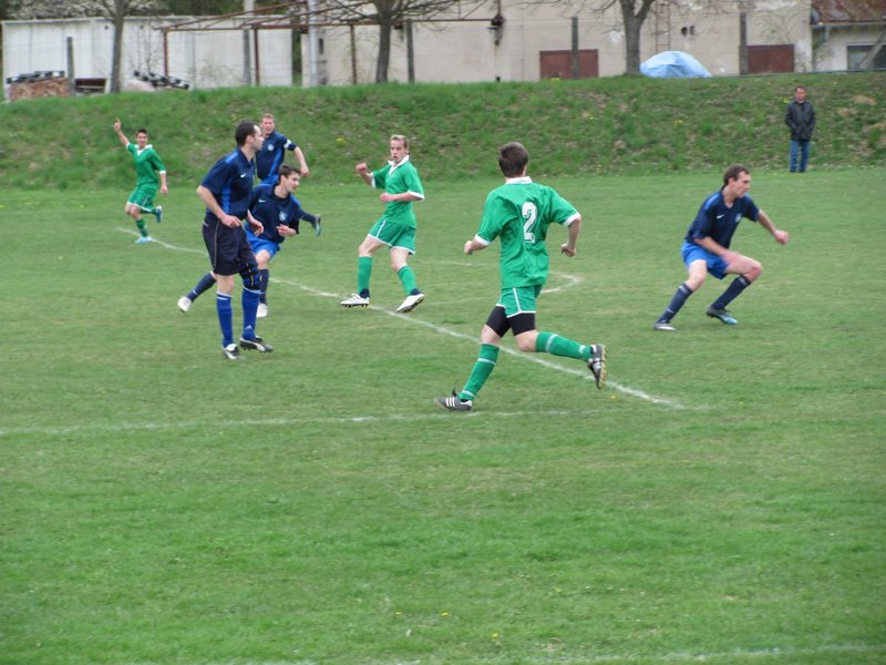 Hvizd rozhodcovskej píšťalky o 16. hodine otvoril prvý jarný zápas, 10. kolo dospelých III. TRIEDY JUH, futbalovej súťaže 2011-2012. Súperom našej zostavy boli hráči TJ Družstevník Jablonka, ktorí sa v jesennej časti prebojovali na tretie miesto tabuľky. V závere prvého polčasu strelou Macháča pod brvno hostí sme sa ujali vedenia. Počas prestávky medzi polčasmi predviedli hostia na ihrisku svojho malého, rýchleho útočníka, v neprekonateľnej forme. Kto ho videl, žasol, ostatným musí stačiť krátke video. Úspešne premenený pokutový kop v šestnástke Michalíka, 10 minút pred koncom druhého polčasu, potvrdil tri body domácim. Zápas skončil 2:0, prebehol férovo, aj keď medzi divákmi na jednej, alebo druhej strane občas prepukli silnejšie emócie. Fanúškovia videli dobrý futbalový zápas, boli šťastní z výhry našich hráčov, ktorí dostali na doplnenie síl dobrú večeru zo sobotného rokovania.