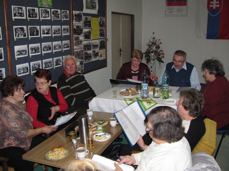 Pravidelné stretnutie seniorov, ktoré tradične koná sa druhý pondelok v mesiaci, prvé v roku 2013, konalo sa 14. januára v zasadačke obecného úradu. Na začiatku uctili si minútou ticha spomienku na zomretých členov v minulom roku. Potom predseda organizácie Štefan Horák prečítal hodnotiacu správu výboru organizácie a oboznámil s pripravovaným plánom na tento rok. Organizácia má 56 členov, asi 50 % sa pravidelne zúčastňuje spoločenských aktivít organizácie. Hospodárka organizácie Anna Minarechová informovala o stave financií. Tak ako väčšina seniorov nemôže vysoko vyskakovať ponad kopou peňazí, podobné je to aj v organizácii. Ešte dobre, že nám ekonómovia vynašli odborný termín na finančné potreby aktivít všetkých organizácií, nie len seniorov. Je to čarovné slovo, samofinancovanie. Hoci je pravdou, že v rámci možností obec prispieva organizáciám či už priestormi, úľavou pri autobusovej doprave obecným autobusom, aj skromným finančným príspevkom organizáciám, ktoré majú celoročné aktivity v obci. Pred pár rokmi, keď sme sa mali o niečo lepšie, boli štedrejší sponzori, ktorí podporili organizáciu seniorov pri významných udalostiach. Návrh a voľba výboru prebehla tak, že všetci členovia pokračujú vo svojich funkciách aj v tomto roku. Po diskusii predseda blahoželal jubilantkám, ktoré oslávili v predchádzajúcich týždňoch narodeniny a v značnej miere samozásobili pohostenie prítomných seniorov. Svoje dojmy z oceňovania „Senior roka 2012“ prítomným priblížila nositeľka ocenenia, Vlasta Fidrichová. Obrazovú dokumentáciu z oceňovania, fotografie a video mohli si seniori pozrieť. Neformálna diskusia pokračovala a podstatne viac prevažovala dobu, akú trvala oficiálna časť stretnutia. (foto 1 až 10)