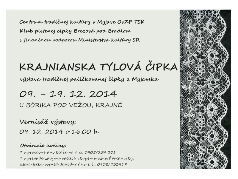 Tradícia paličkovania tylových (vláčkovích) čipiek v oblasti Myjavskej pahorkatiny siaha do 80. rokov 19. storočia. V tom čase sa v Krajnom usadili dve sestry – čipkárky z českého Vamberka, ktoré učili miestne ženy paličkovať čipky podľa flanderských a vamberských vzorov. Dovtedy sa tu paličkovali len konopné mreški na kútne plachty a cvernové čipky na kroje. Tylové čipky si ženy kupovali od podomových obchodníkov, na jarmokoch alebo objednávali katalógovým spôsobom priamo z Belgicka. Z Krajného sa táto zručnosť rozšírila do okolitých kopaníc (Doliny, U Pagáčov, Podkylava...) a ďalších kopaníc a obcí v blízkosti Brezovej pod Bradlom (Štverník, Danech Vrch, Hurbanova Dolina, Košariská, Priepasné...) a Myjavy (Turá Lúka, Bukovec, Vrbovce...). Postupne sa technika výroby tylových čipiek v pôvodnej bielej farbe stala mimoriadne obľúbenou a využívanou na zdobenie krojových súčiastok, počnúc od Myjavy cez Hradište pod Vrátnom, Bukovec, Košariská, Krajné, Horné Zelenice, Pastuchov až po Nové Sady pri Nitre, kam sa niektoré krajnianske čipkárky presťahovali. Domácky vyrobené čipky začali časom nahrádzať kupované. Spočiatku čipkárky pri pletení čipiek vychádzali z vamberských vzorov, postupne začali motívy obmieňať, dopĺňať, vytvárať a pomenúvať podľa vlastnej fantázie. Vďaka tomu nadobudla krajnianska paličkovaná čipka svoje osobité špecifiká a stala sa originálnou dominantou zdobnosti dievčenského i ženského sviatočného a obradového odevu nielen na Myjavsku. Paličkovanie tylových čipiek bolo pomerne rozšírené ešte v medzivojnovom období, pričom úpadok tejto činnosti priamo súvisel so zanikaním nosenia ľudového odevu. Napriek tomu potreby čipiek, a tým aj zručnosť paličkovania pretrvala, nakoľko sa ďalej používali na obradových textíliách a obrusoch. Paličkovaná čipka je aj v súčasnosti využívaná ako ozdobná súčasť bohoslužobného rúcha evanjelických kňazov - kamže. Zvýšený záujem o zručnosť pletenja krajnianskej čipky nastal v roku 1997, kedy v Brezovej pod Bradlom vznikol čipkársky krúžok pod vedením Anny Potúčkovej st.. Jeho členky sa okrem aktívneho paličkovania a edukačnej činnosti začali venovať aj zberu tradičných vzorov a ich pôvodných názvov. Za 16 rokov existencie sa (toho času) Klub brezovskej pletenej cipky prostredníctvom krajnianskej tylovej čipky úspešne prezentoval na mnohých podujatiach a výstavách nielen na Slovensku, ale aj v zahraničí. Svojou nepretržitou činnosťou tak nepochybne udržiava kontinuitu čipkárskej tradície Myjavska.