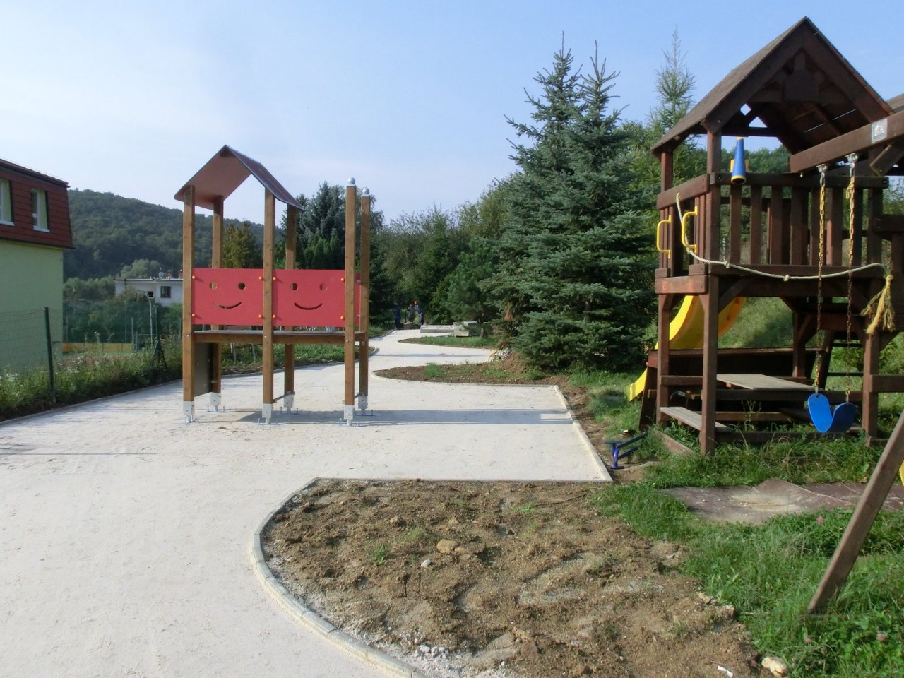 Na zasadnutí Obecného zastupiteľstva 14.6.2012 bol schválený projekt vybudovania detského ihriska v areáli ZŠ s MŠ a na Obecnom športovom areáli v rámci projektov Kopaničiarsky región - MAS. Poslanci boli oboznámení s projektom vybudovania rekreačnej zóny, finančná komisia bola splnomocnená na výber bankového subjektu pre financovanie projektu, ktorý je spolufinancovaný Európskou úniou z Európskeho poľnohospodárskeho fondu pre rozvoj vidieka, vo výške 80% z celkového finančného nákladu. V prvej polovici roku 2013 bol schválený projekt, vo výške nenávratného finančného príspevku: 61 073,44 €. Potom mohli pokračovať ďalšie kroky na zabezpečenie realizácie projektu. Z ponúk po výberovom konaní dodávateľom stavby stala sa spoločnosť SLV s.r.o, Krajné, uzatvorením zmluvy 13.8.2013. Prvé práce v teréne začali v júni 2014, súbežne v obidvoch areáloch. Koncom augusta firma PLAYSYSTEM s.r.o. začala s montážou zostáv a komponentov, pre cvičenie a relax detí. Nepriaznivé daždivé počasie trochu komplikovalo montážnikom ich prácu, detské ihrisko v OŠA úspešne obstálo aj veľkú vodu 12.9.2014. Začiatkom októbra už finišovali posledné práce na úprave okolia, aby dodávateľ stavby SLV s.r.o, Krajné odovzdal obci ukončené dielo. Oficiálne bolo dielo obci Krajné odovzdané 13.10.2014, čím bola splnená podmienka pre žiadosť refundácie projektu, nenávratného finančného príspevku z Eurofondu. Celkové náklady na realizáciu projektu sú 62 023,44 €.