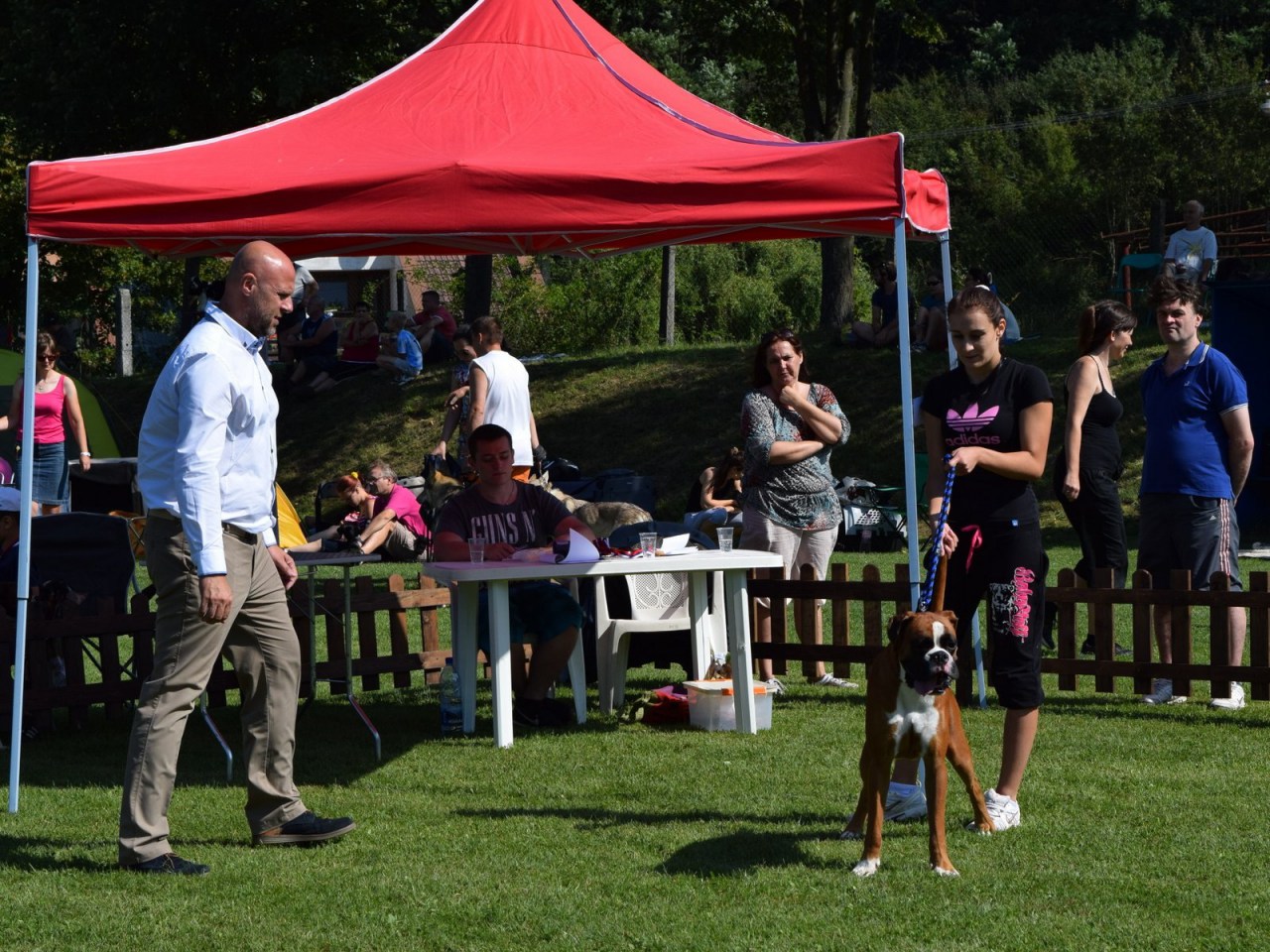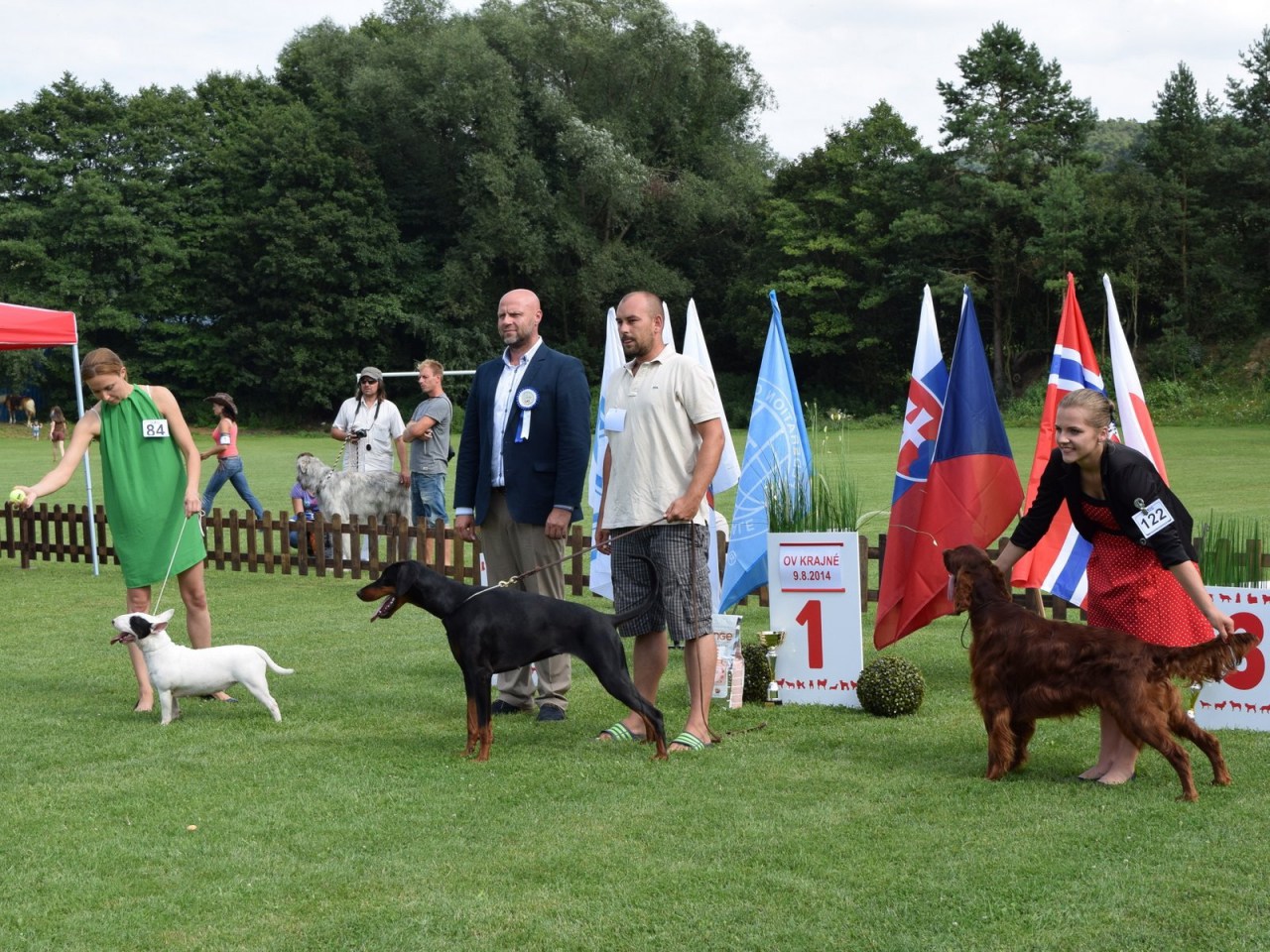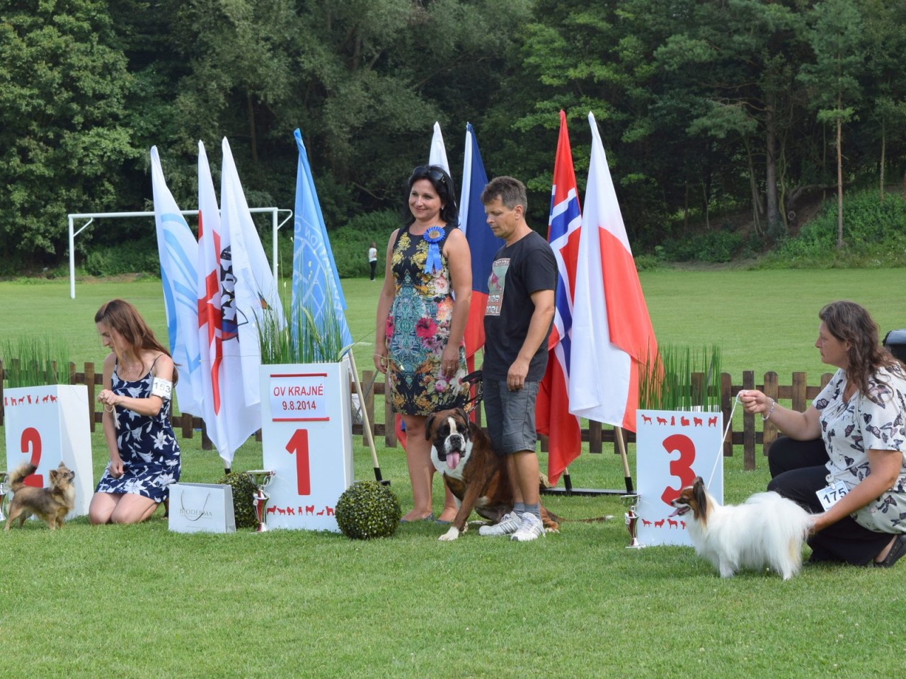 Od roku 2007 sa v priestoroch Obecného športového areálu v Krajnom už piaty raz predstavili vystavovatelia psov porote a širokej diváckej spoločnosti, aby ukázali výsledky svojho chovateľského snaženia. V roku 2007 sa uskutočnila Stredoeurópska výstava boxerov, v roku 2008 Klubová výstava boxerov. V poradí tretie podujatie ktoré sa usporiadalo, bol Svetový šampionát ATIBOX IPO 2009, so zameraním na plemeno boxerov bolo rozsahovo najbohatšie, najreprezentatívnejšie pre našu obec. V minulom roku na Oblastnej výstave psov všetkých plemien bolo pre porotu náročné rozhodovanie vybrať v rôznych kategóriach a skupinách z vyše 150 súťažiacich vystavovateľov najlepších trofejných jedincov. Na druhej Oblastnej výstave psov, ktorá sa konala 9. augusta 2014 sa zúčastnilo v ôsmich triedach 204 prihlásených jedincov, prevažne zo Slovenska, niekoľko z ČR, Poľska, ale aj z Nórska. Sobotný program začal otvorením výstavy o 9.30 hlavným organizátorom, prezidentom Únie kynologických klubov SR Jozefom Šusterom. Predstavil súťažnú porotu v zložení: Vladimír Javorčík, Dr. Gabriela Ridarčíková, Mgr. Viera Staviarska. Privítal hostí: prednostu Okresného úradu Myjava Ing. Juraja Bakoša, riaditeľa RVPS Nové Mesto nad Váhom MVDr. Jána Dlhého, riaditeľa odboru Hipológie a kynológie Prezídia Policajného zboru SR pplk. Branislava Diďáka, prezidenta Zväzu športovej kynológie SR Mgr. Juraja Štaudingera a oboznámil prítomných s programom celého podujatia. Všetkých účastníkov pozdravil aj starosta obce Ing. Vladislav Šuster. Celé dopoludnie predvádzali vystavovatelia svojich miláčikov porotcom v „kruhoch“, ohradách postupne jednotlivo, kde sa zapisovali hodnotenia psíkov. Pre deti, ktoré tvorili aj tretinu účastníkov, aby sa nenudili, bežal zábavný program. Veľký záujem, dlhý rad, bol o jazdu na koňoch. Nenudili sa ani pri ďalších aktivitách. Po obede, keď väčšina súťažných prehliadok skončila, predstavili sa príslušníci jazdnej a kynologickej polície s ukážkami činností svojich zverencov, koní a psov. V úlohe civilného figuranta pri ukážkach policajných zákrokov, ocitol sa aj Jozef Slezák. Potom sa dokončili ešte niektoré súťažné hodnotenia a pripravili sa záverečné súťaže, výber psíkov pre trofejné miesta. Záverečné súťaže aj s odovzdávaním cien, mali diváci možnosť s prehľadom sledovať z tribúny, ktoré moderovala Dominika Šusterová. a Aj tento rok bol našim hosťom riaditeľ pretekov psích záprahov na Donovaloch Pavol Toma, ktorý prispel aj cenou do súťaže. Za prípravu a hladký priebeh podujatia patrí vďaka hlavným organizátorom, ich pomocníkom, rozhodcom, aktérom vystupujúcich v sprievodných programoch, obslužnému personálu z TJ Slovan Krajné a DHZ Krajné, všetkým, ktorí podporili toto podujatie a prispeli k spokojnosti vystavovateľov a návštevníkov, čím viac zviditelnili našu obec. Viac fotografií, z iného pohľadu, aj textvých informácií nájdete na facebooku dogshow.