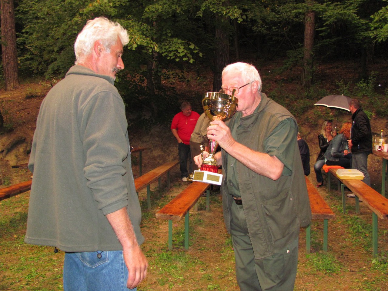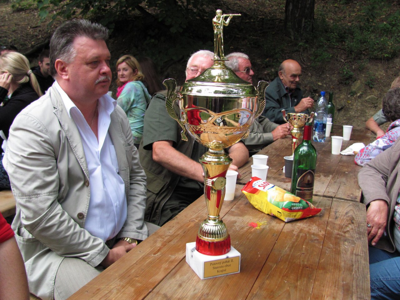 Po verejných streleckých pretekoch 5.7.2014 usporiadalo PZ Krajné-Drieňovica pre svojich členov a rodinných príslušníkov posedenie na sobotu 16.8.2014 v areáli „Borinka“. Posedenie bolo spojené so streleckými pretekmi o putovný pohár starostu obce Krajné. Gulášmajstri uvarili doobeda srnčí guláš, aby popoludní pred streleckými súbojmi mohli sa všetci posilniť. Potom už nasledovali streľby v americkom trape. Niekoľko strelcov malo nastrieľané položky s vysokým počtom bodov, ale vo finálových streľbách sa stretli Milan Baran a Igor Karlik. Nakoniec bol úspešnejší Milan Baran, ktorý si prevzal trofejný pohár od starostu obce. Počasie poľovníkom prialo, až po vyhodnotení trochu pokazilo rozprúdenú zábavu mrholenie.